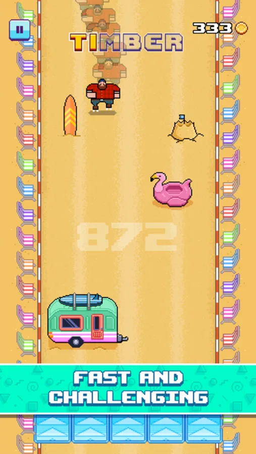 Test your skills in this funny fast paced arcade game where Timberman goes roller skating!