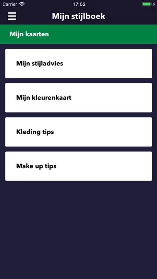 Je krijgt tijdens de training toegang tot een persoonlijke stijlkaart in deze app. Hierin staan alle adviezen en tips uit de training. De kennis uit de training heb je dus altijd bij de hand wanneer je gaat winkelen, voor je kast staat of op wilt maken.