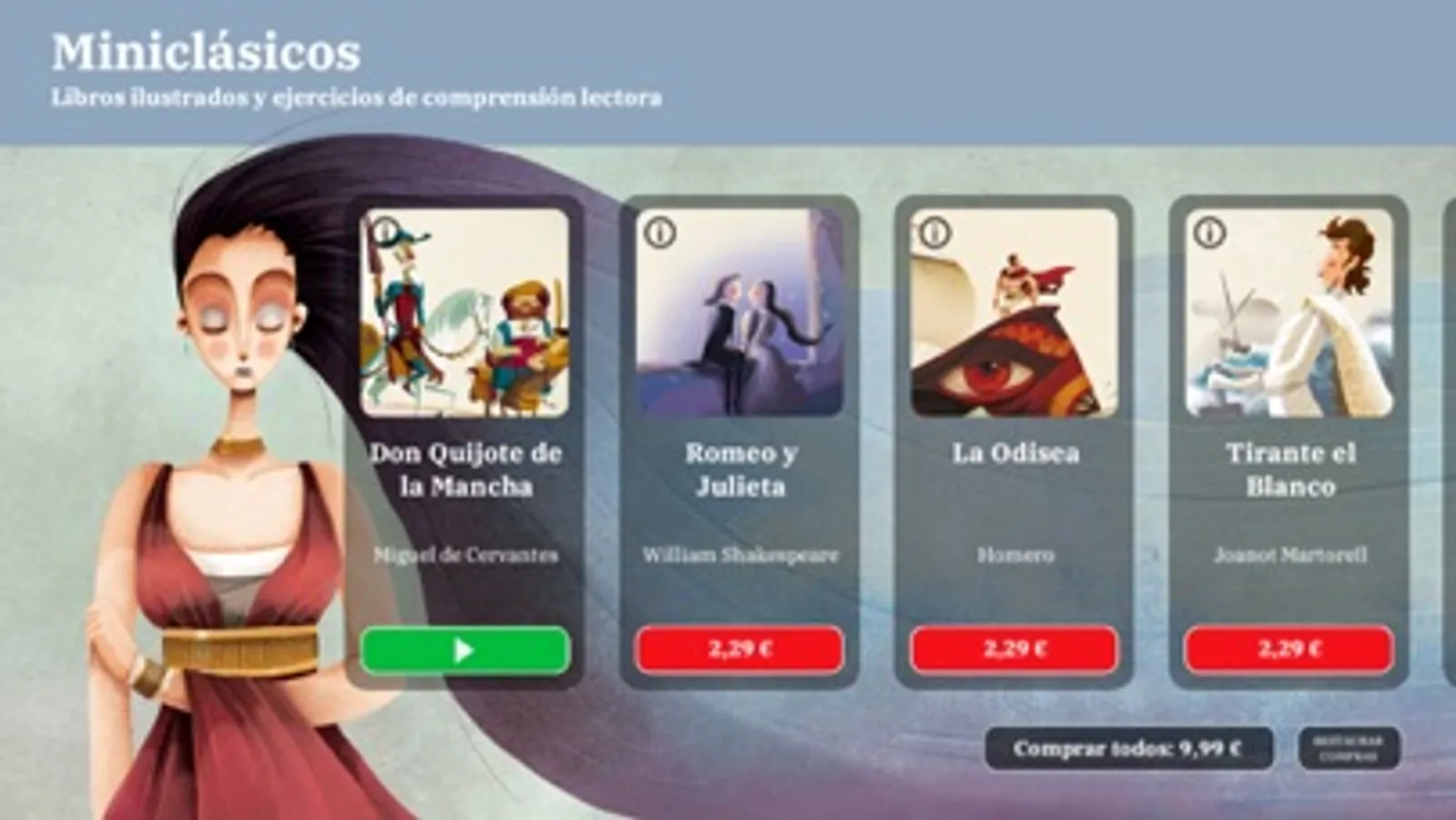 Esta colección de libros ilustrados acerca a los niños y niñas, de una manera sencilla y cercana, ocho grandes obras clásicas de la literatura universal, como El Quijote, La Odisea, Romeo y Julieta, Frankenstein o los Viajes de Gulliver. Incluye ejercicios interactivos destinados a desarrollar la comprensión lectora de los alumnos de segundo ciclo de información primaria.