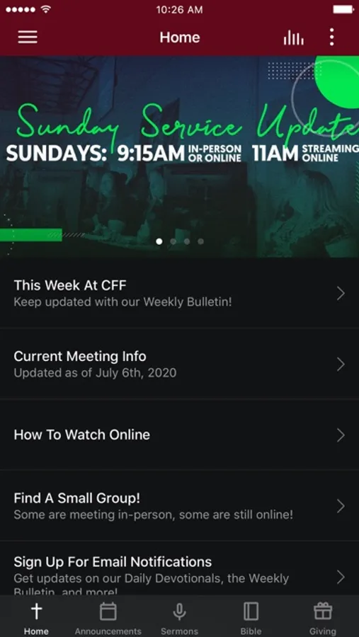 Don't miss out on a single event again! Catch up on old sermons, watch the new ones as they are live! Stay connected with your CFF Family!