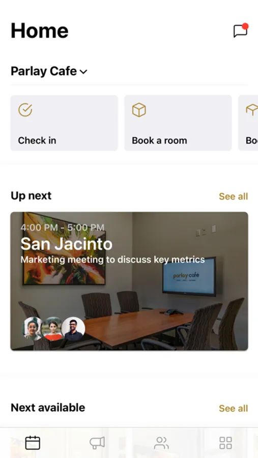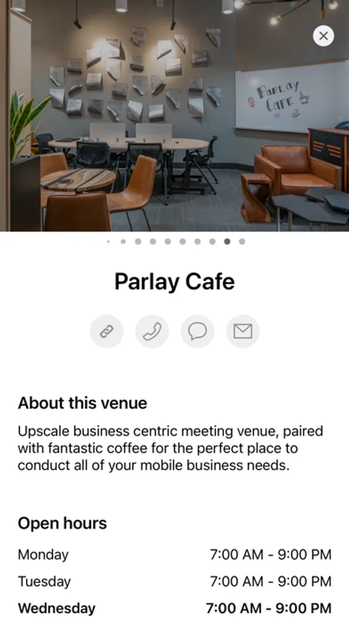 WORK | MEET | GATHER at Parlay Cafe! Book lounge time, conference and training rooms and manage your membership, profile etc. with the Parlay Cafe app.