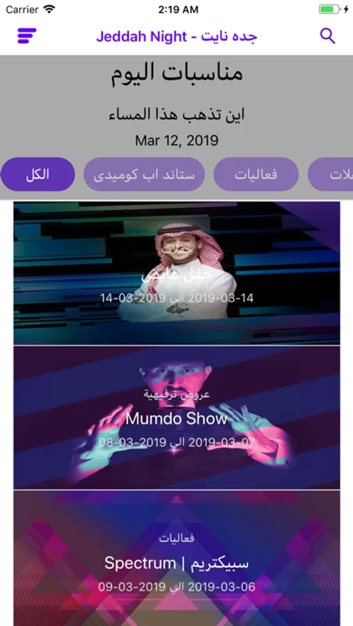 عرض جميع المناسبات الترفيهية الراقية في مدينة جدة يومياً.