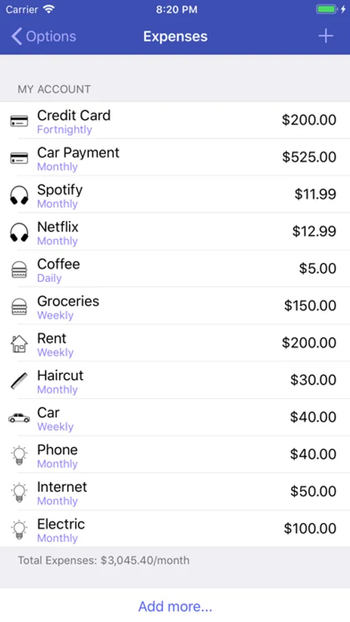 -Add unlimited one-off and recurring income, expenses and transfers.