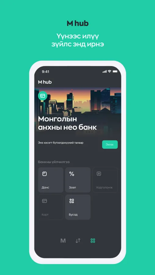 М бол дараагийн үеийн салбаргүй, бүрэн дижитал банк. Бид уламжлалт банкны бүтээгдэхүүн үйлчилгээг дахин загварчилж, хувь хүний эрүүл санхүүг дэмжих орчинг хамтдаа бүтээнэ.
