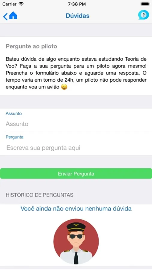 Aprenda teoria de voo da maneira mais didática e interativa possível, faça simulados, controle o conteúdo que quer aprender primeiro. Surgiu uma dúvida referente ao conteúdo? Pergunte ao piloto na hora! E ainda por cima você pode compartilhar o seu progresso de estudos com seus amigos, tudo isso nas suas mãos.