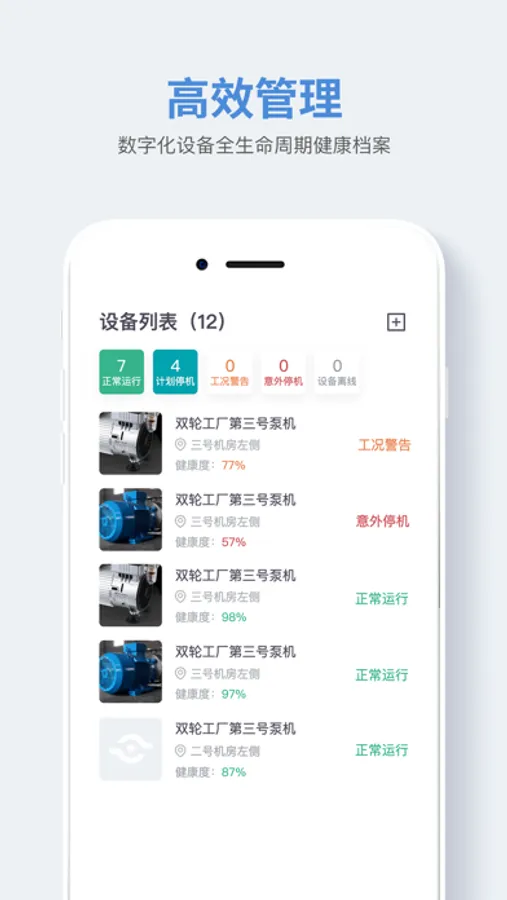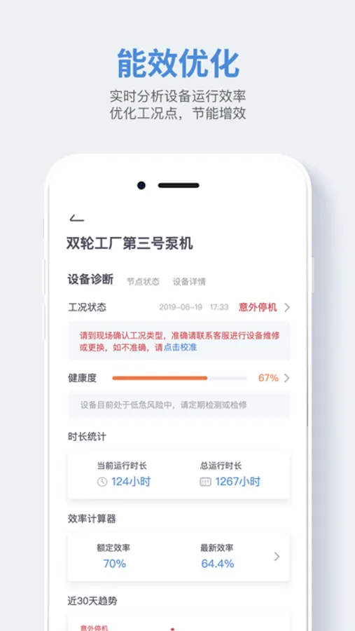 湃星云泵机健康监测云平台,基于端云协同的人工智能算法结合业务专家知识库,为您提供低延时、高可靠的泵机启停分析、异常检测、故障识别、健康评估、设备档案等功能。让您随时随地掌握泵机运转状态,及时发现泵机异常及故障原因,降低意外停机风险与损失,提高生产效率与管理效率。