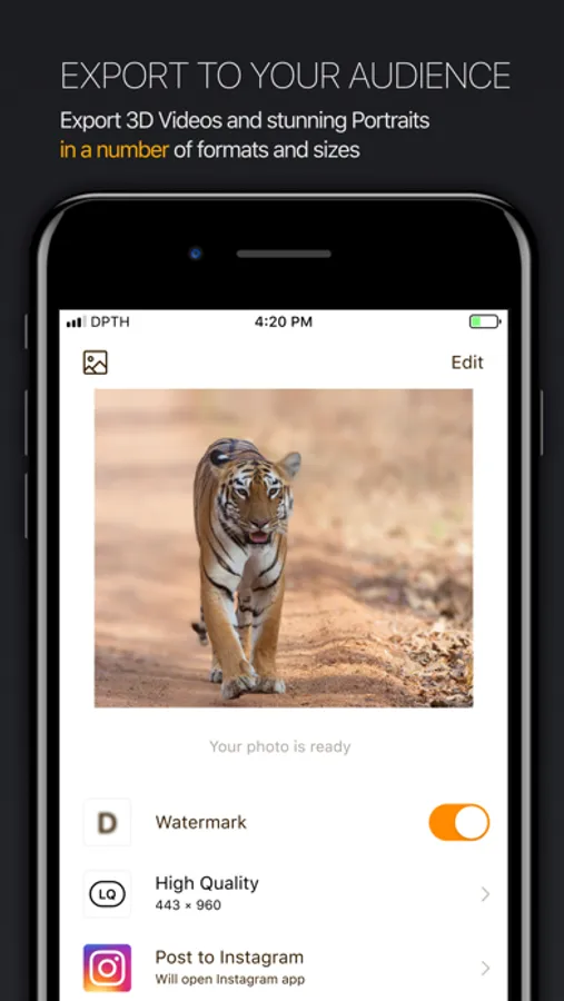 DPTH adds adjustable Depth Of Field and 3D photo effects to any image!