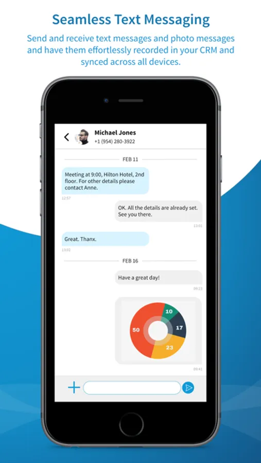 > Send text messages (SMS and MMS) to any contact and have it automatically log in your CRM