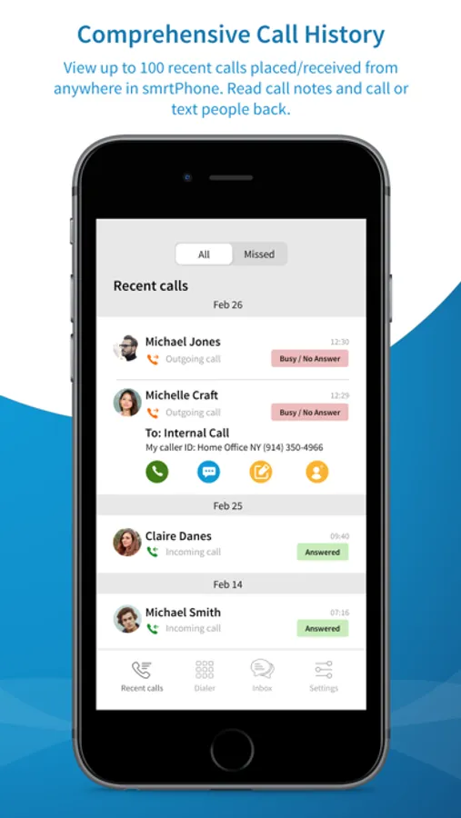 > Make and receive calls and have call data effortlessly tracked, including call recordings