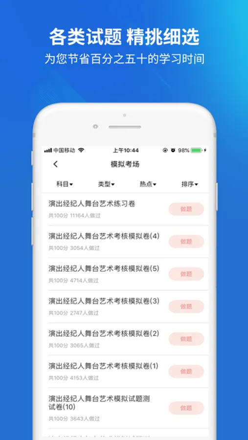 演出经纪人考试题库包含了舞台艺术基础知识 政策法规及经纪实务等课程的历年真题集模拟试题题型,题库中的试题全真模拟真实的考试,是各位考生学习乃至通过考试的好帮手。