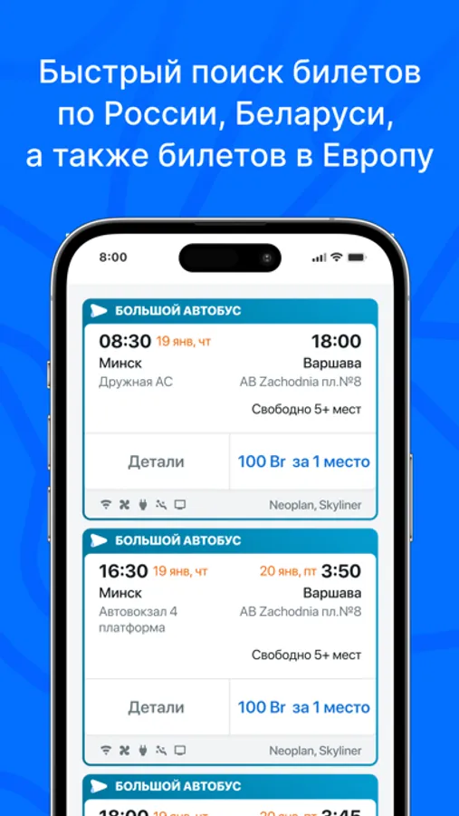 Атлас — это бесплатное мобильное приложение для поиска билетов на автобусы по России, Беларуси и странам СНГ.