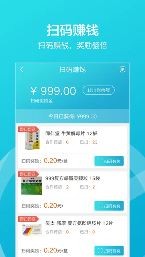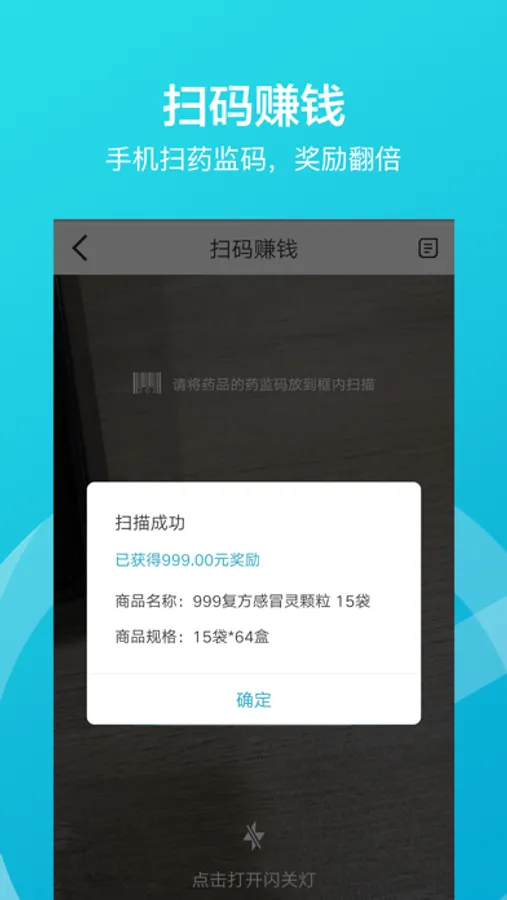 特点三:更暖心。奖励升级,只需用手机扫一扫药品包装的药品电子监管码,即可领取现金奖励,奖励满满,始终为您准备惊喜。