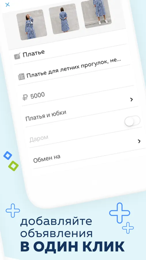 Бесплатно создавайте объявления и обменяйтесь всем, чем захотите — техникой, одеждой, электроникой, смартфонами, мебелью, домашними животными, любыми товарами, вещами и услугами.