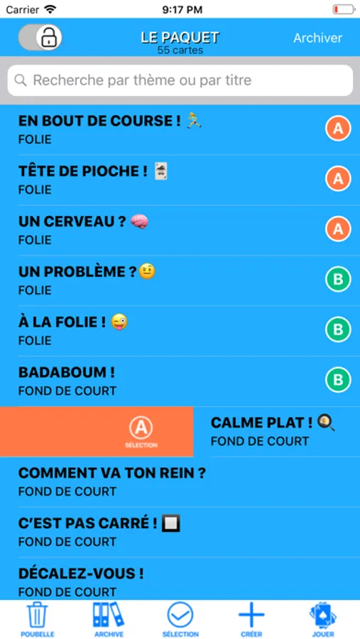 *Sélectionner une partie des cartes pour cibler un thème en particulier tout en réalisant un tirage au sort avec la sélection.