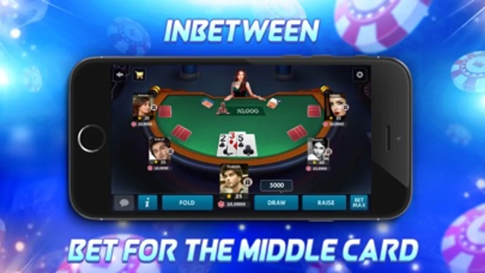 "In-between is a simple 3 card game played with a single deck. You are dealt 2 cards and then a 3rd card. If the value of the 3rd card dealt to you falls in-between the 2 dealt cards – you win!