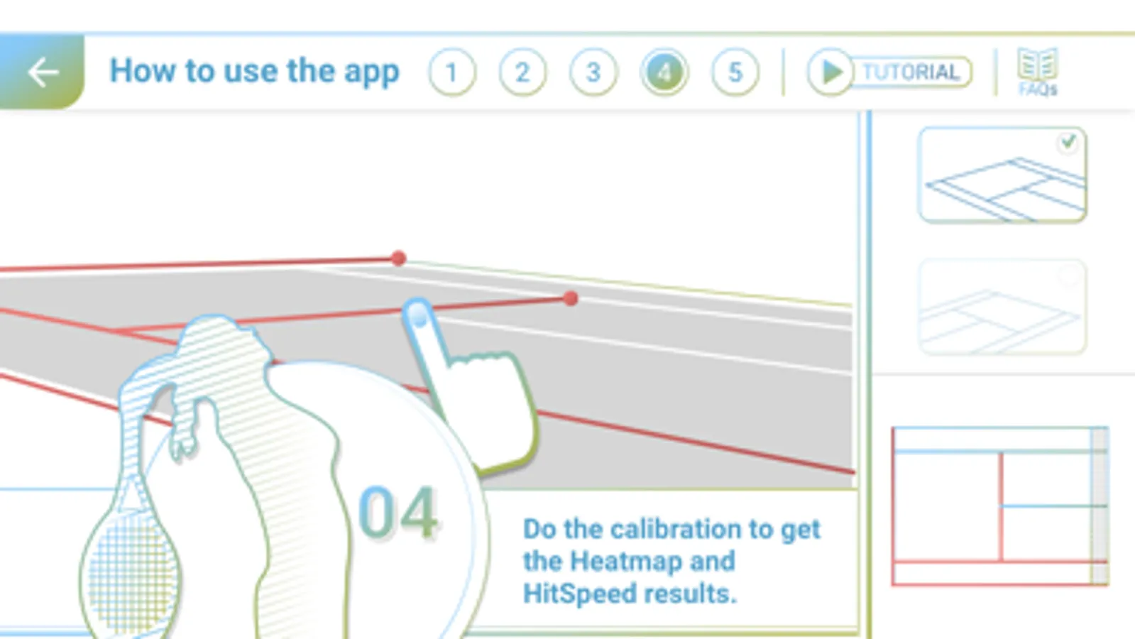 Using Tennis Tracking App is really easy. You just need to mount your iPhone on a tripod and place it at the center of the court and start recording your side. When you stop recording you will have a full length video and a mini-video and photo frames of all your shots. You can than proceed to the calibration to have the Hit speed and heat map.