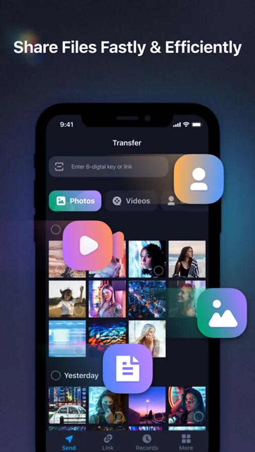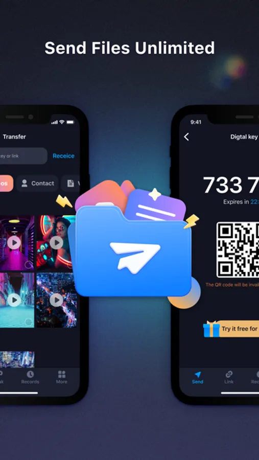 A security key that lets you send and receive files. It will be generated after selecting files. When the key is entered on the receiving device, files will be sent instantly.