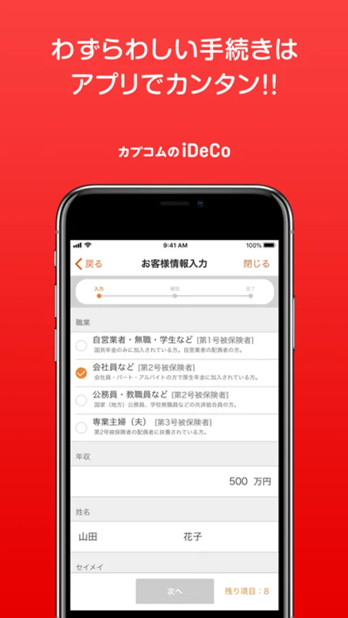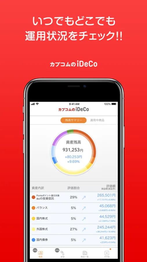「カブコムのiDeCo(イデコ)」は、申し込みもスマホでカンタン!申し込みをしてから加入までのステータスもアプリで管理できます。加入後は運用状況(運用中の商品の評価金額)もアプリからかんたんに確認でき、運用スタイルの見直しもアプリでできます。