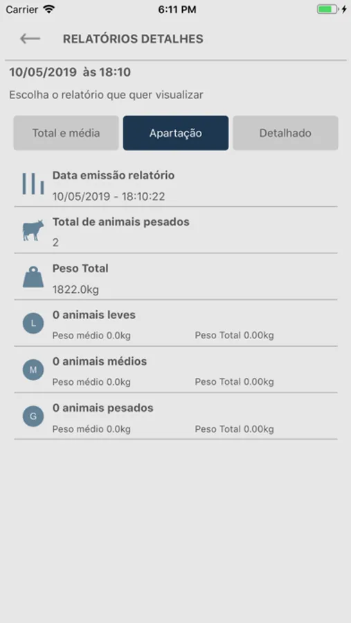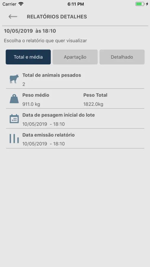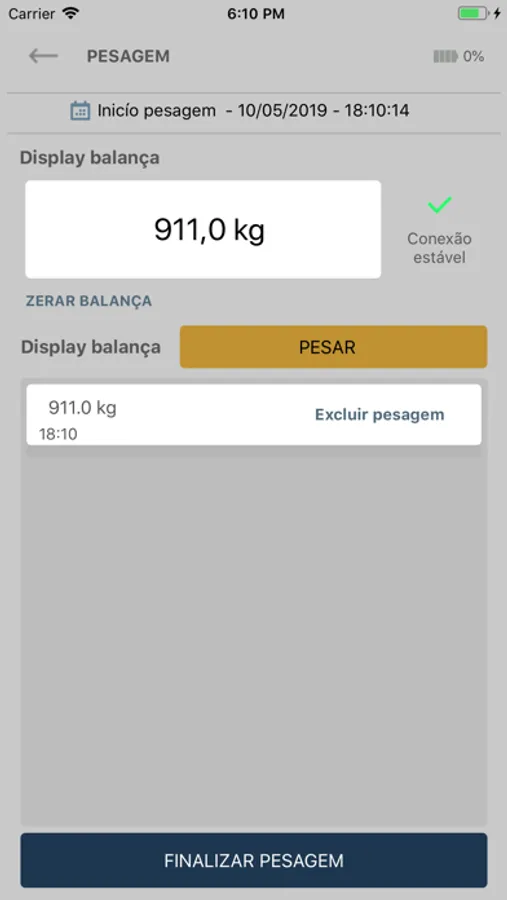 O aplicativo, conectado com a balança, permite ao usuário realizar as pesagens e armazena-las. Com isso, o usuário tem fácil acesso as informações de peso, gerando relatórios rapidamente além de poder compartilha-los.