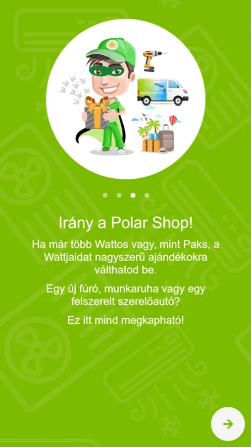 A Play!Polar egy okostelefon applikáció, egy digitális játék. A játékban úgy tudsz előre haladni, hogy pontokat gyűjtesz, amit a játékban Wattnak nevezünk.
