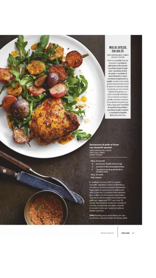 La prima edizione italiana della più celebre testata al mondo di enogastronomia. Un punto di vista internazionale e autorevole sulla scena della ristorazione e sull’universo vino e beverage, con il più grande archivio di ricette da ogni angolo del pianeta. Scoprite con FOOD&WINE ITALIA le destinazioni più emozionanti, le nuove esperienze e i trend emergenti attraverso storie e personaggi fuori dai cliché, grandi reportage fotografici e rubriche originali. Imparate le tecniche dei top chef e preparate il menù perfetto, dagli antipasti ai dessert, con i migliori abbinamenti di vini e cocktail grazie ai consigli dei nostri esperti.