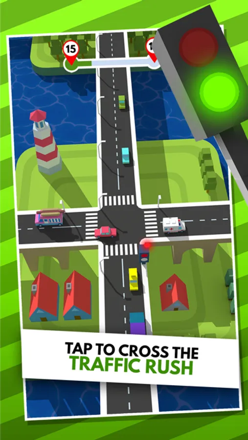 Traffic Rush 3D is a MASTERPIECE of SIMPLICITY— send a stream of cars forward as FAST as you can, without getting SLAMMED in the intersection!