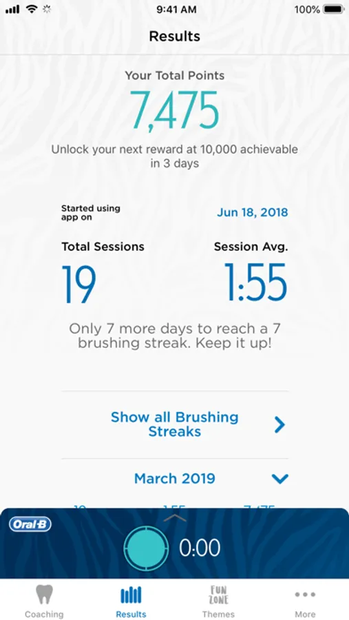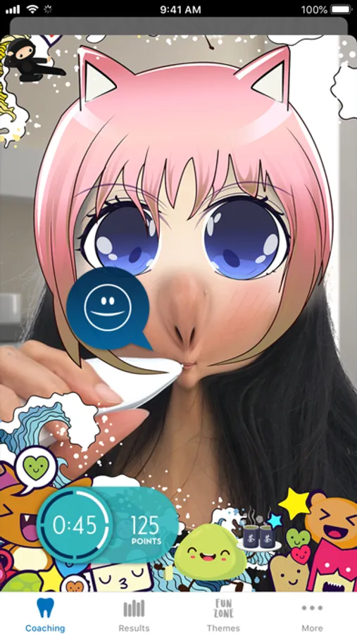 The Oral-B Fun Zone will help you brush like your dentist recommends with a fun-filled reward system that unlocks engaging photo filter themes similar to your favorite social media platform.