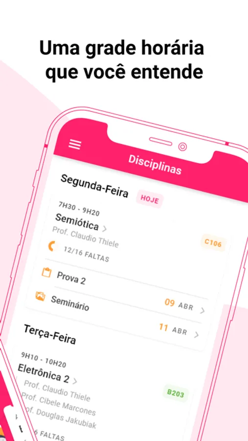 - Atividades do dia, incluindo trabalhos, provas e aulas