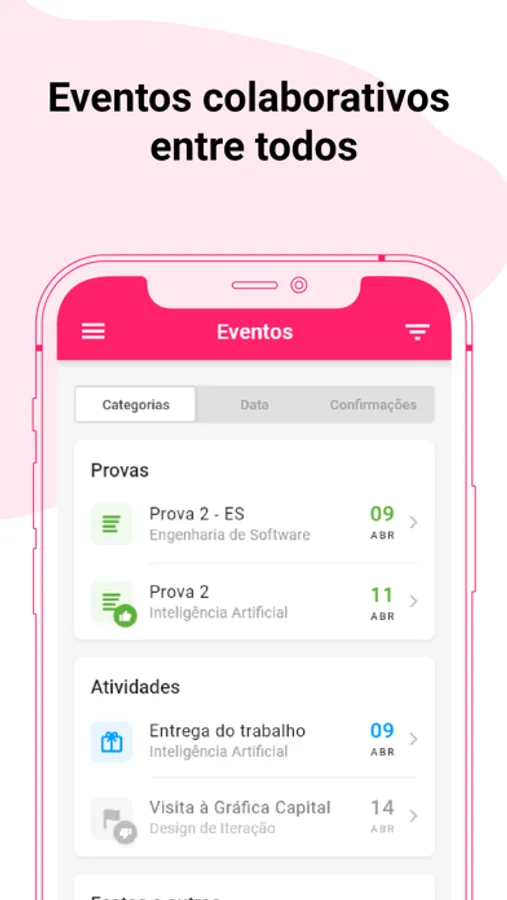 - Calendário colaborativo entre todos os alunos da mesma turma