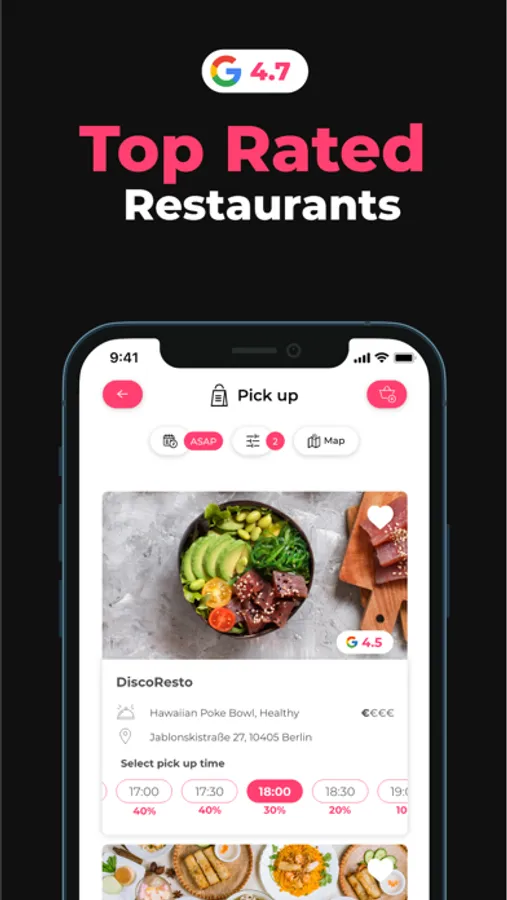 Depending on the time of day, users can book tables with a discount or order food for less. Because of the time-based discounts, you can enjoy all the dishes on the regular menu for a lower price. This is a great option to discover new restaurants. All our restaurants have very good Google reviews. Search for your favorite cuisine, a district, or use your location to find the best restaurants and food in your city!