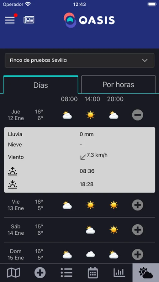 Once our system has learned your specific crop, you only need to follow our extremely simple interface who will guide you the daily actions in your crop, and monitor the status of all your plantation.