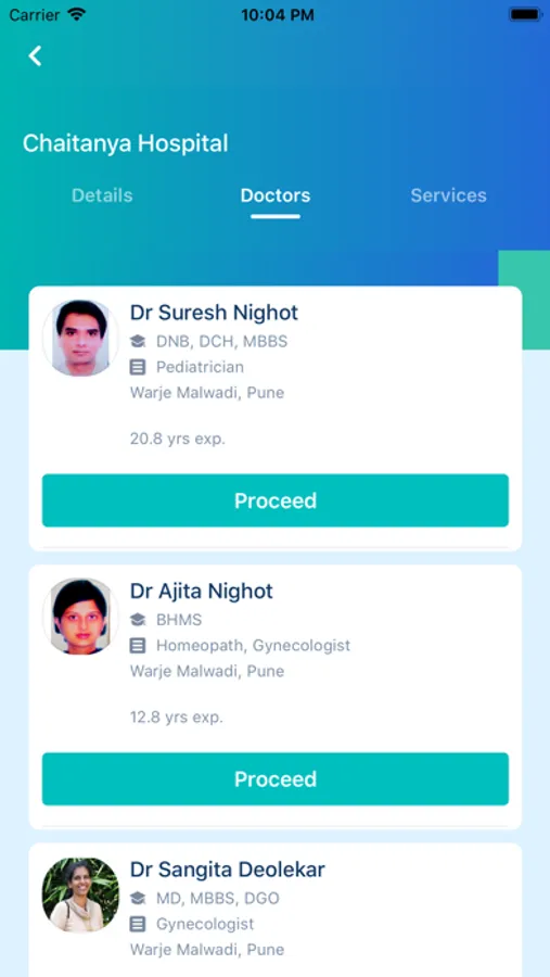 * Search and locate doctors in Chaitanya Hospital