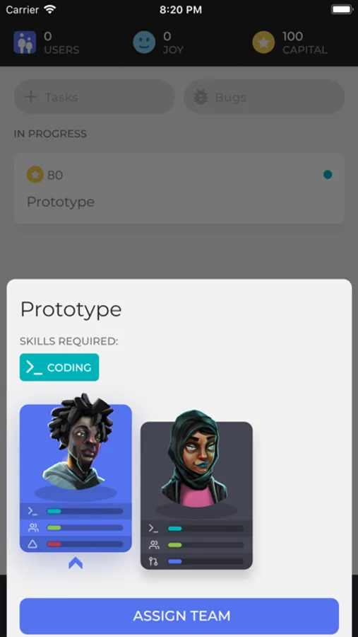 Build your team, slay bugs, don't get fired. All built with Flutter and Flare.