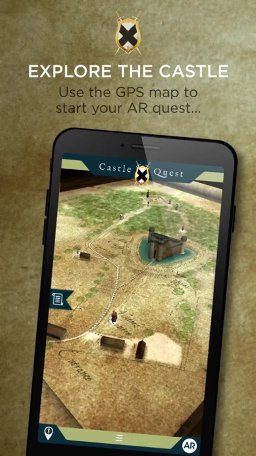 Use the 3D GPS map to find the characters around the castle and grounds. When you reach a trigger post, tap the AR button, then point your phone at the central image on the panel to see a character appear.
