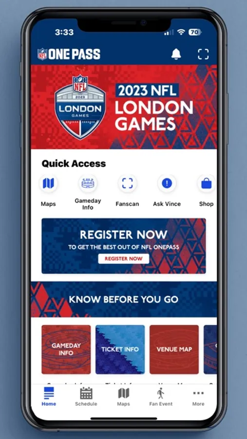 NFL OnePass is your key to accessing all the exciting NFL events year-round. Download the app prior to any NFL event or sign up at the event to participate in games and activities, access tickets and event information, and more around each NFL event.