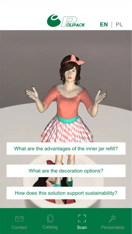Meet the Poilpack innovative cosmetics packaging in the new dimension. Scan selected packaged to learn more about latest product line additions or point the camera to the marked shelf at Polipack booth on selected trage events during to discover newest products. You can also use the app to virtually personalize selected packages with your design.