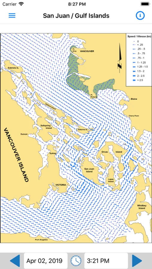 The PNW Current Atlas brings a fast and easy way to view Pacific Northwest current prediction charts for the Juan de Fuca Strait / Strait of Georgia regions on your mobile device. This includes complete coverage of the US San Juan Islands, the Canadian Gulf Islands, and the Eastern Juan de Fuca Strait and more.