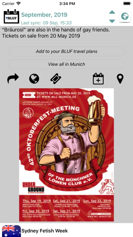 With offline access, you'll be able to look up details whenever you want. You can also share event information easily via other apps, or add events directly to your personal calendar. Swipe on an event to mark it as a favourite, view the location on a map, and more.