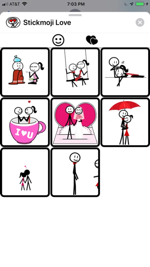 Our popular animated Stickmoji Stickers now has Love Stickers. Express your feelings when texting with Stickmoji Love Stickers :)