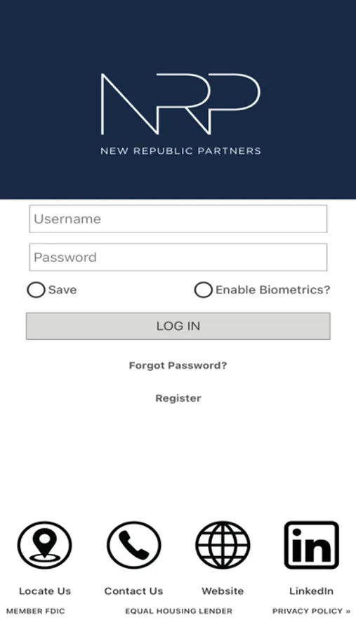 Requirements: You must be a client of New Republic Bank who is an authorized user of the mobile application. To request access, please contact your client representative. If you are not a current client, and seek more information, please contact New Republic Bank at support@newrepublicbank.com.