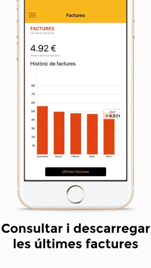 - Visualitza la teva última factura o bé l’històric de facturació en pantalla, o bé descarrega-te-les en format pdf.