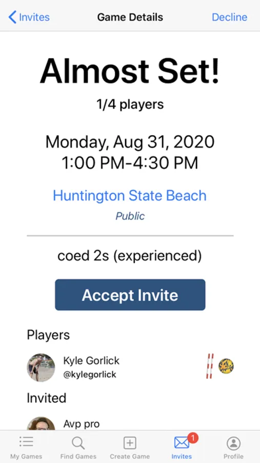 • All the details in one spot including who is bringing what (ball, lines, antenna, etc)