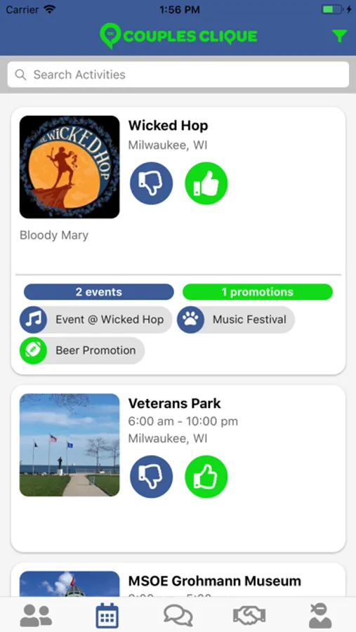 Our app suggests local events and activities in your area! Couples Clique allows you to build friendships with people who enjoy the same things.