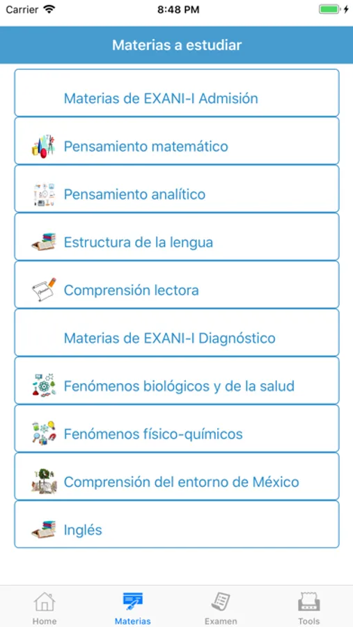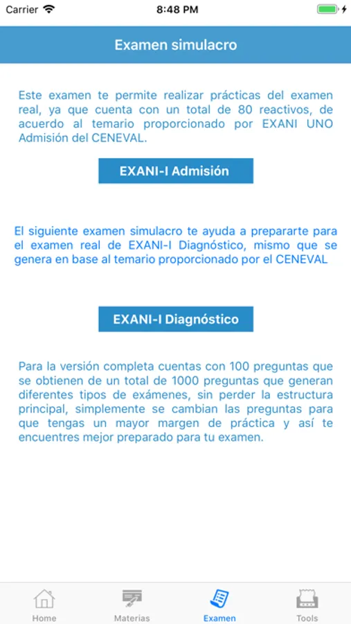 Esta app es una guía interactiva, con material cuidadosamente seleccionado en las materias que te ayudan a prepararte para el examen EXANI-I Admisión:
