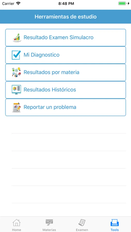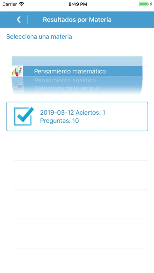 Así mismo te permite realiza practicas por materias, para que te enfoques en las áreas que te consideras con mayor debilidad.