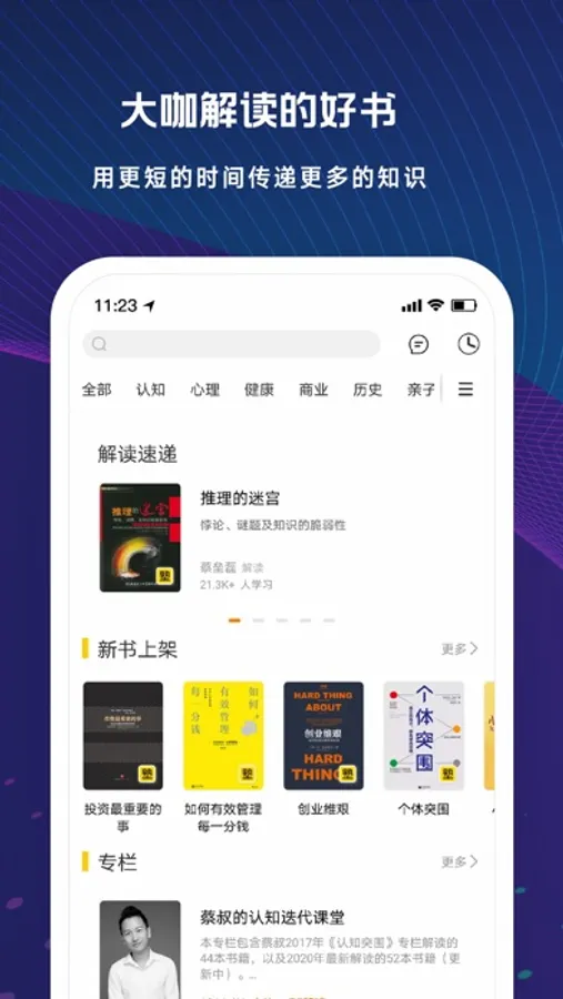 这里有包含情感、职场、经济、亲子、区块链、玄学、技能、人文、教育、睡眠等在内的各领域顶级课程,汇集市面上的大咖导师,为你带来最干的干货,直指核心,轻松解决你的定点困惑。