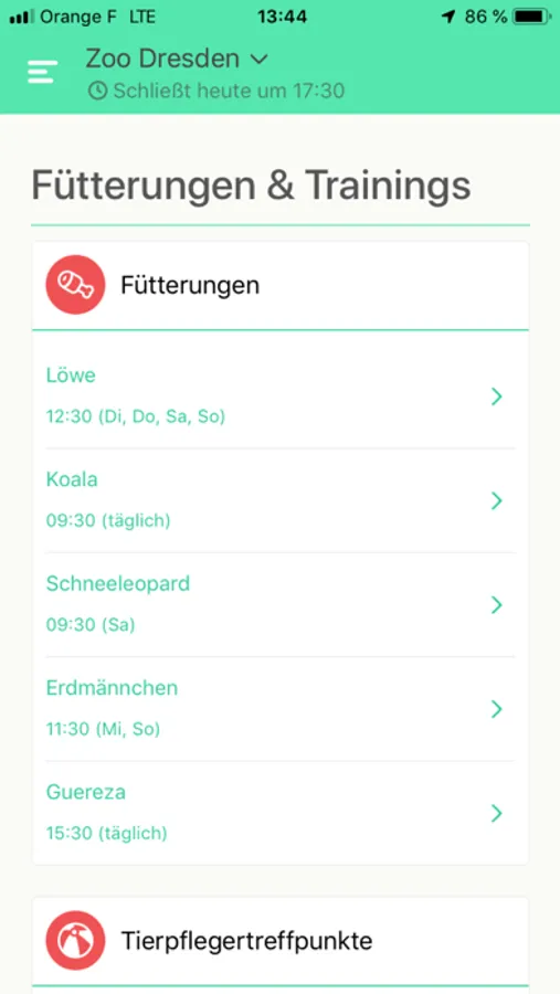 Wir sind eine Multi-Zoo-App und haben bereits den Zoo Dresden, den Zoo Leipzig, den Tierpark Görlitz, den Biotopwildpark Anholter Schweiz, die Wilhelma in Stuttgart, den Münchner Tierpark Hellabrunn, den Zoo Augsburg, den Zoo Braunschweig, den Zoo Duisburg, den Zoo Berlin, den Zoo Heidelberg, den Erlebnis-Zoo Hannover, den Zoo Frankfurt, den Tierpark Gotha, den Wildpark Lüneburger Heide, den Zoo Karlsruhe, den Tiergarten Nürnberg, den Zoo Osnabrück, den Zoo Dortmund, den Kölner Zoo, den Wildpark Pforzheim, den Wildpark Poing, den Tropenzoo Bansin, den Tierpark Chemnitz, das Wildgatter Oberrabenstein, das Wildgehege Moritzburg, den Tierpark Hirschfeld, den Zoo Hoyerswerda und den Tierpark Hagenbeck integriert. Weitere Zoos, Tier- und Wildparks gehen in Kürze live - es lohnt sich daher regelmäßig in die App zu schauen.