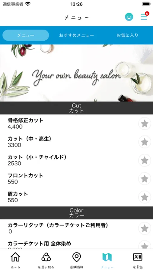 気になるサロンメニューや価格をアプリから簡単にご確認いただけます。