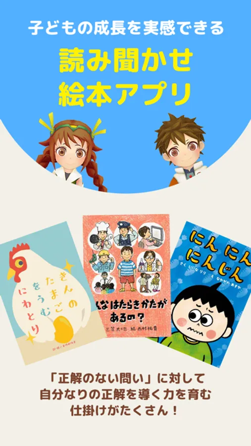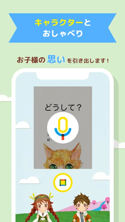 絵本の中でお子様自身の考えを発するための問いを、キャラクターが質問します。