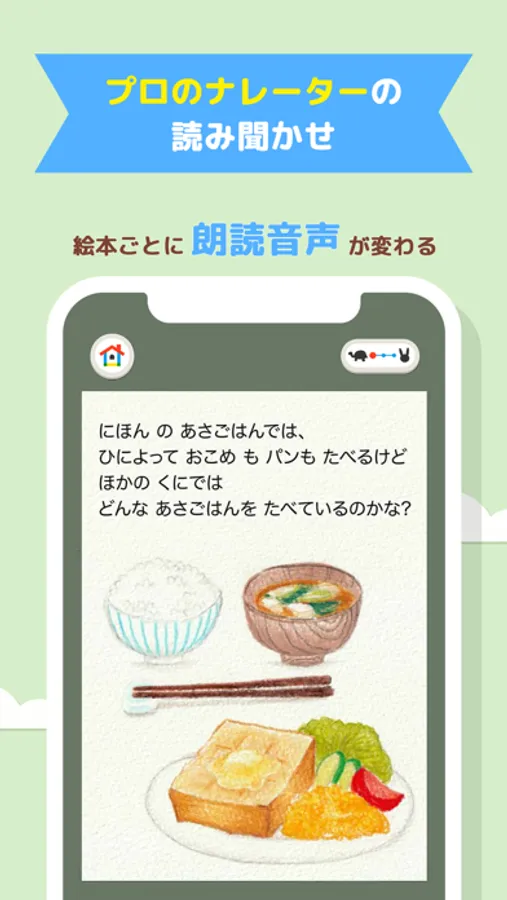 抑揚を抑えたフラットリーディングで、登場人物の気持ちを想像して、考える力を伸ばすことをサポートします。